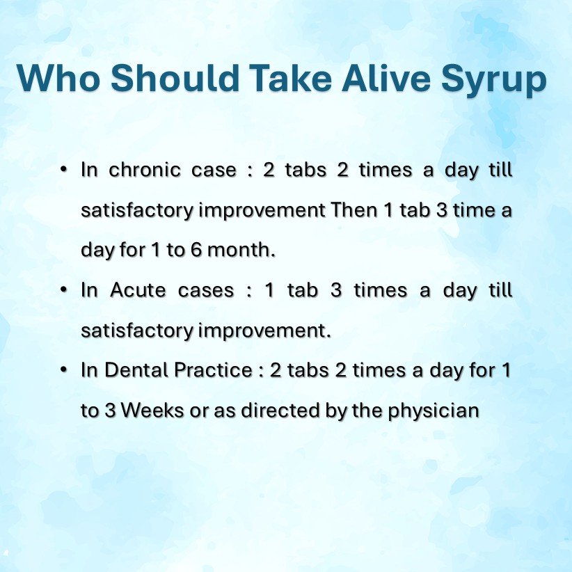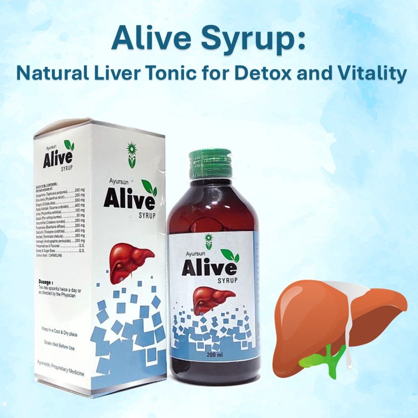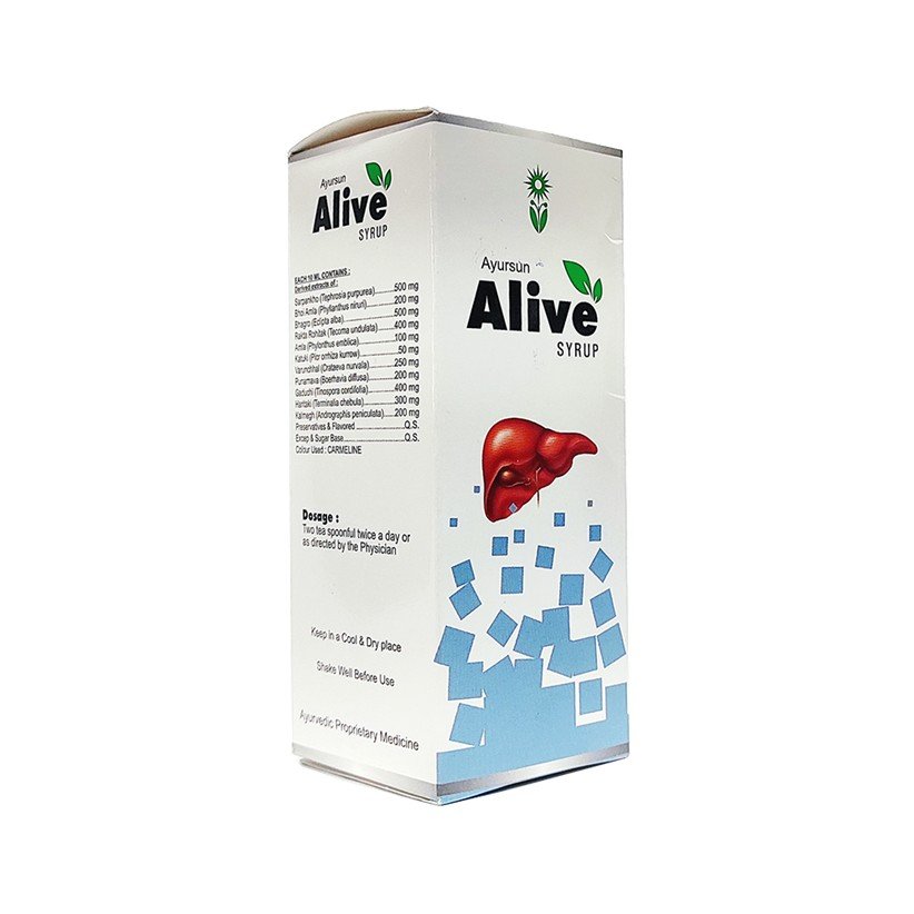 - Ayursun Alive syrup is an herbal syrup from Ayursun Pharma Company that effectively restores the excretory-secretory mechanism of hepatocytes, rectifies impaired liver function, apart from poor appetite to chronic constipation, improves biliary flow metabolism of fat, aids repair 7 regeneration of liver cells.